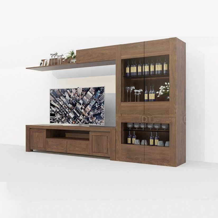 Kệ tivi K01 được thiết kế theo kiểu hiện đại, phù hợp với mọi không gian phòng khách. Các bạn có thể lựa chọn mẫu thiết kế kệ tivi nhà mình giống như kệ tivi KTV01 này của chúng tôi, còn về kích thước sao cho phù hợp với không gian phòng khách nhà bạn, sẽ được các KTS của công ty tính toán và tư vấn. KTV01 được thiết kế gồm 1 nơi để đặt tivi và các đồ công nghệ khác như đầu máy, băng đĩa, loa,… một kệ trên để đặt những đồ lưu niệm như ảnh hay các đồ dùng trang trí; bên cạnh đó phái mạnh còn có cho mình cả một tủ rượu để gia chủ có thể trưng bày những nhãn hiệu rượu quý mà mình có, vừa giúp dễ dàng trong việc sử dụng chúng để tiếp những vị khách quý của mình, vừa giúp thể hiện đẳng cấp của gia chủ.