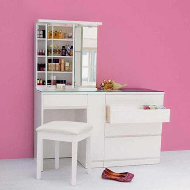 Mẫu bàn trang điểm với thiết kế màu trắng hiện đại, trang nhã, tôn thêm vẻ đẹp cho căn phòng của bạn.